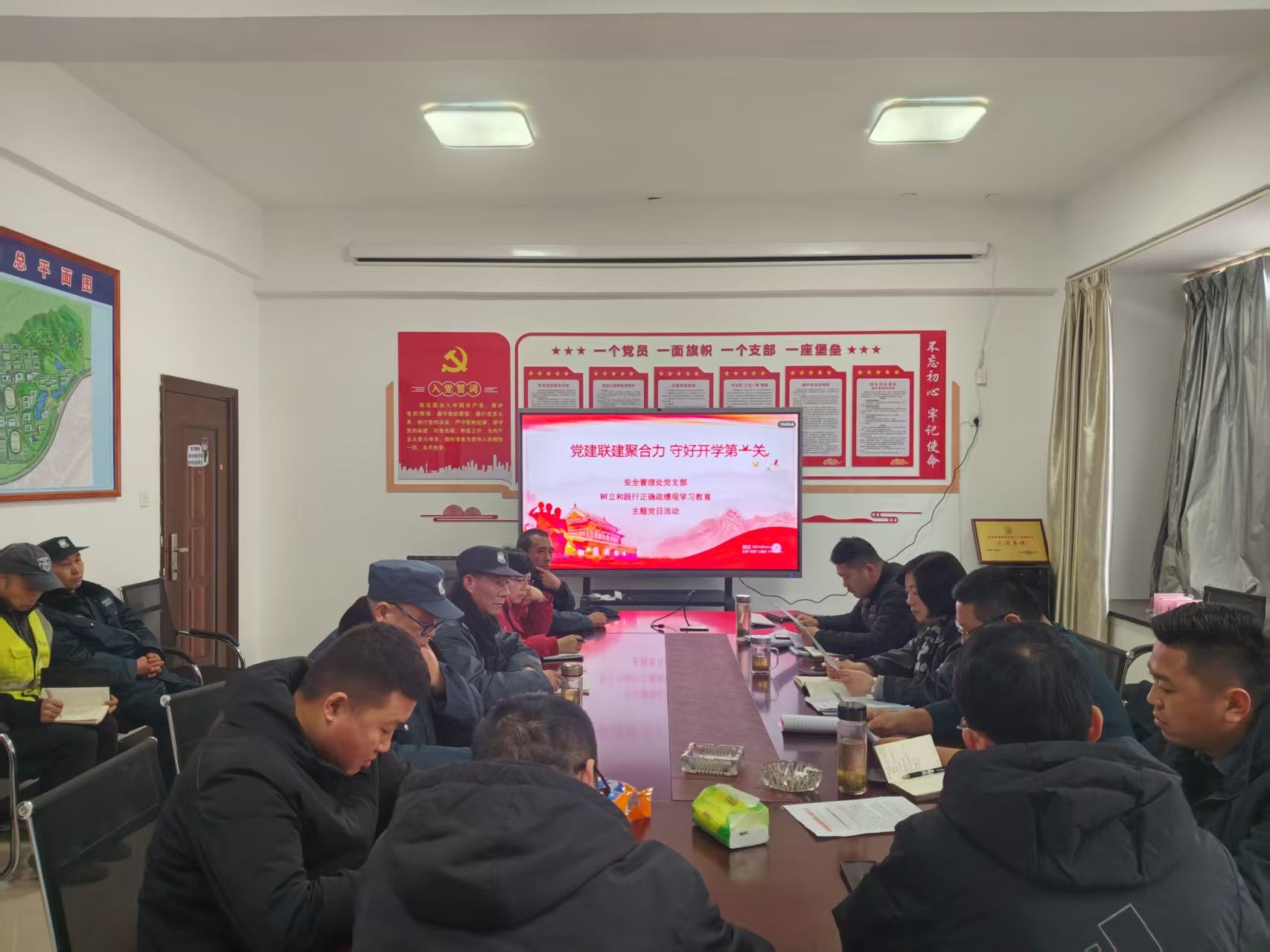 3月4日下午,安全管理处党支部在党员活动室开展“树立和践行正确政绩观学习教育”主题党日活动,活动由安全管理处党支部书记王娟主持,党支部全体党员,第三方服务单位相关人员及校卫队、学生反诈志愿者服务队代表参会。